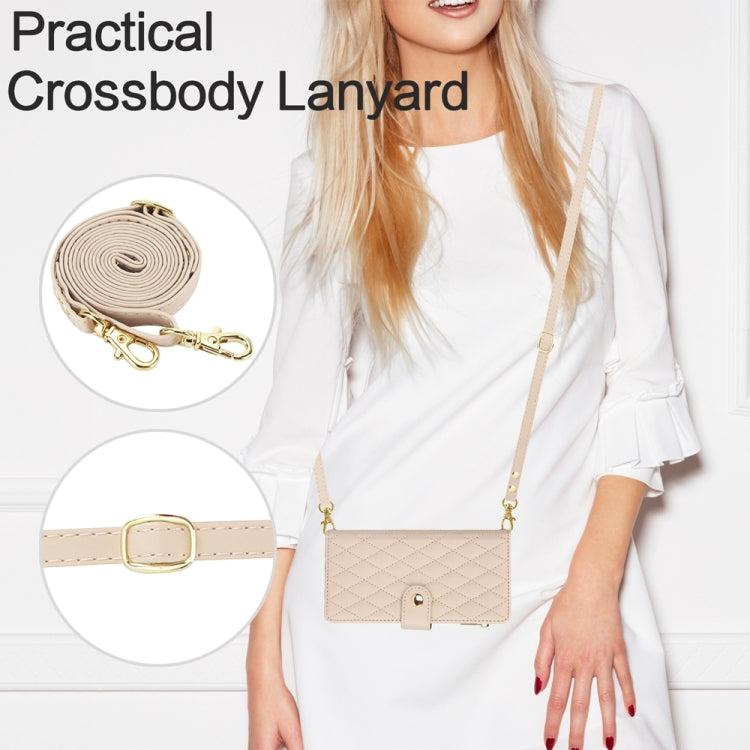 For iPhone 11 YM016 Rhombic Zipper Card Wallet Leather Phone Case with Lanyard(Apricot)