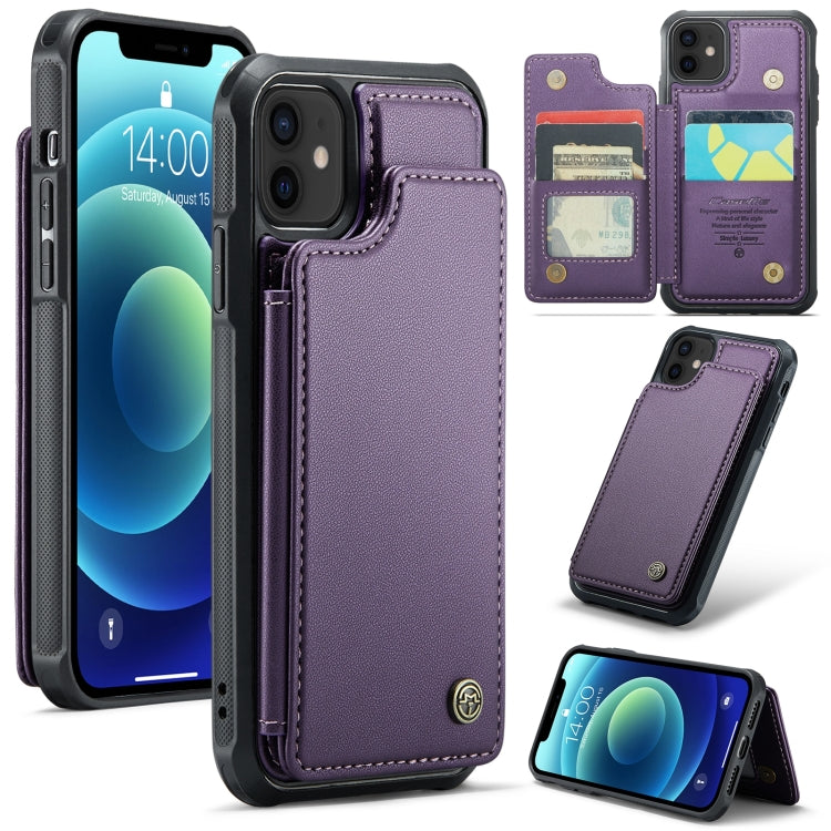 For iPhone 12 / 12 Pro CaseMe C22 Card Slots Holder RFID Anti-theft Phone Case(Purple)