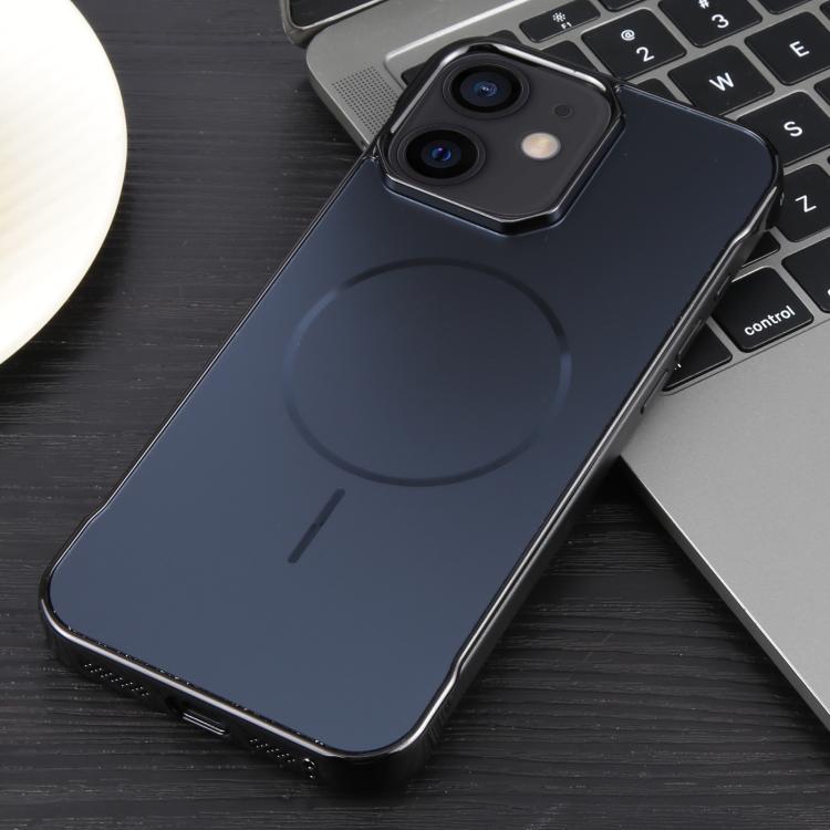 For iPhone 12 / 12 Pro Electroplating Frameless Frosted Anti-Glare PC MagSafe Phone Case(Black)