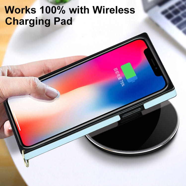 For iPhone 12 / 12 Pro Elegant Rhombic Pattern Microfiber Leather +TPU Shockproof Case with Crossbody Strap Chain(Blue)