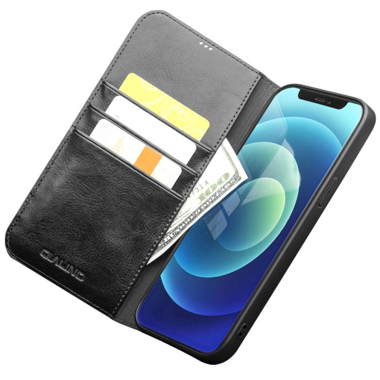 For iPhone 12 / 12 Pro QIALINO Horizontal Flip Leather Case with Holder & Card Slots & Wallet(Black)