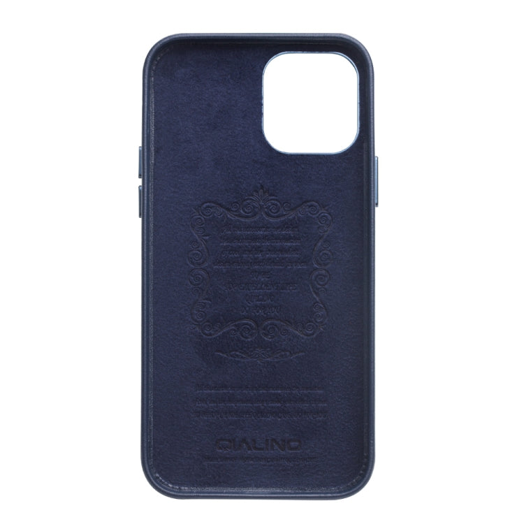 For iPhone 12 / 12 Pro QIALINO Shockproof Cowhide Leather Protective Case(Blue)