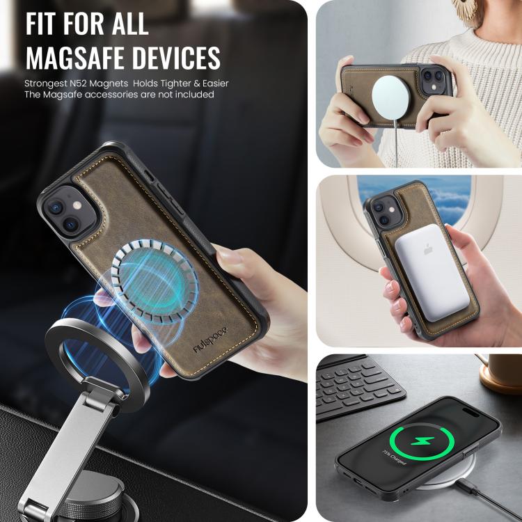For iPhone 12 AutSpace A13 MagSafe Magnetic RFID Flip Card Bag Phone Case(Coffee)