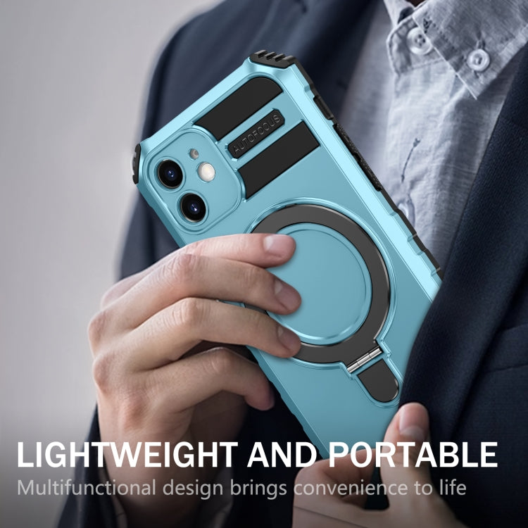 For iPhone 12 MagSafe Magnetic Holder Phone Case(Light Blue)