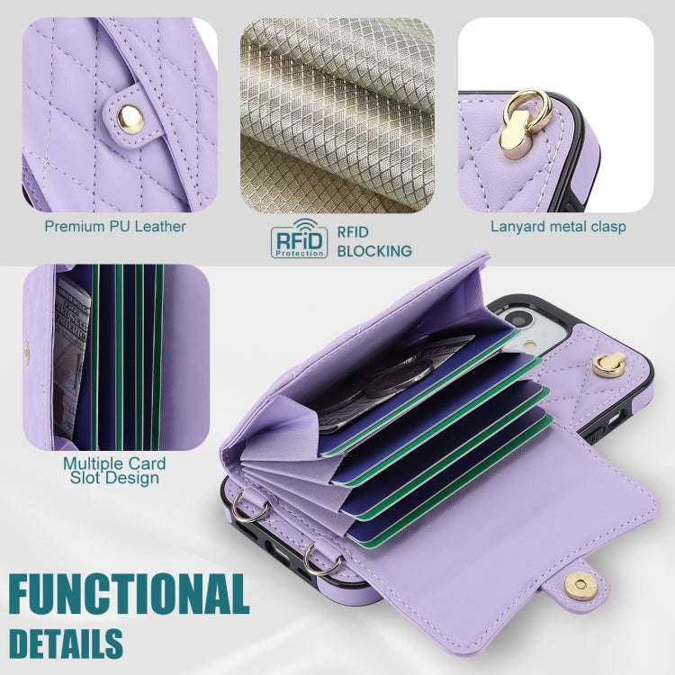 For iPhone 12 mini Crossbody Rhombic Horizontal Wallet Leather Phone Case(Purple)