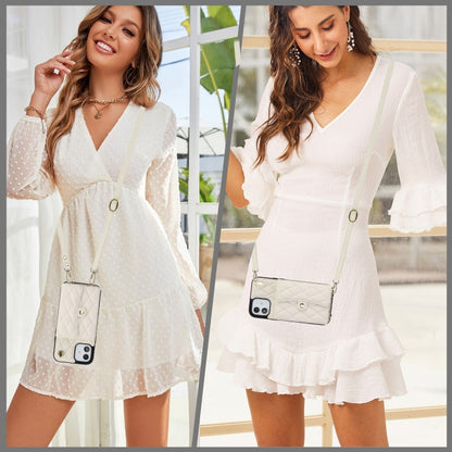 For iPhone 12 mini Crossbody Rhombic Horizontal Wallet Leather Phone Case(White)
