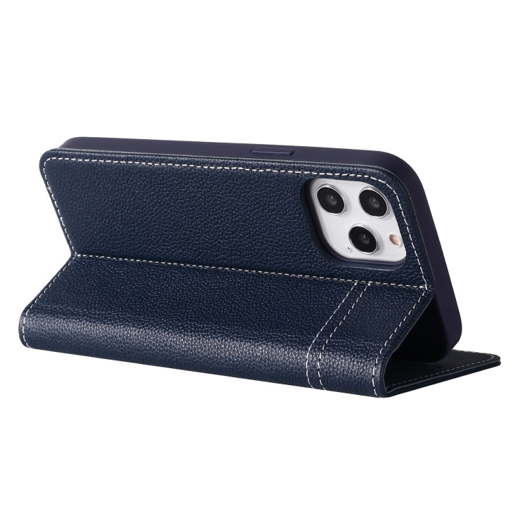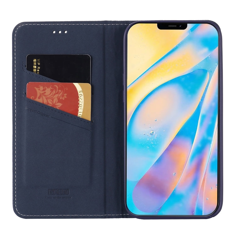 For iPhone 12 mini GEBEI Top-grain Leather Horizontal Flip Protective Case with Holder & Card Slots (Blue)