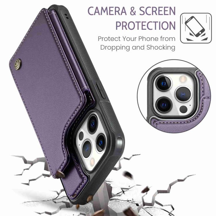 For iPhone 12 Pro Max CaseMe C22 Card Slots Holder RFID Anti-theft Phone Case(Purple)