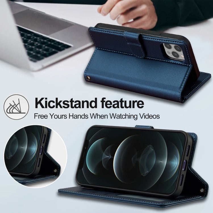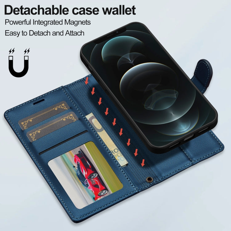 For iPhone 12 Pro Max LC.IMEEKE L2 Series Detachable Magsafe PU Phone Case with Lanyard(Blue)