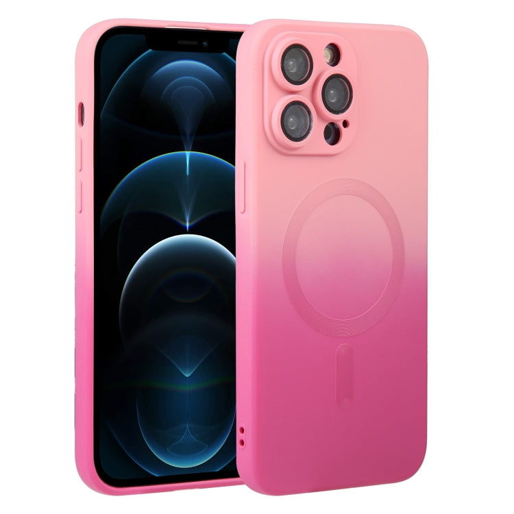 For iPhone 12 Pro Max Liquid TPU Silicone Gradient MagSafe Phone Case(Pink Red)