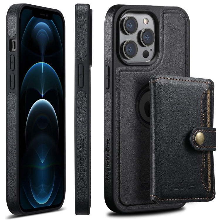 For iPhone 12 Pro Max Suteni M1 Oil Wax MagSafe Detachable Horizontal Card Bag Phone Case(Black)