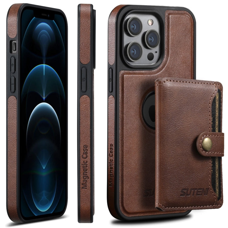 For iPhone 12 Pro Max Suteni M1 Oil Wax MagSafe Detachable Horizontal Card Bag Phone Case(Brown)