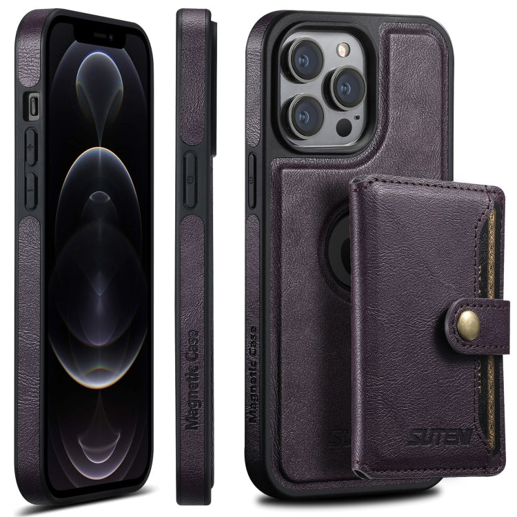 For iPhone 12 Pro Suteni M1 Oil Wax MagSafe Detachable Horizontal Card Bag Phone Case(Purple)