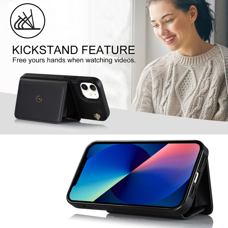 For iPhone 12 RFID Card Slot Phone Case with Long Lanyard(Black)