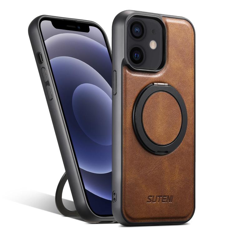 For iPhone 12 Suteni G3 Oil Wax 360 Rotation Holder MagSafe Back Phone Case(Brown)