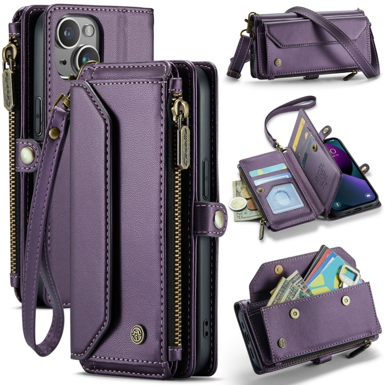 For iPhone 13 CaseMe C36 Card Slots Zipper Wallet RFID Anti-theft Leather Phone Case(Purple)