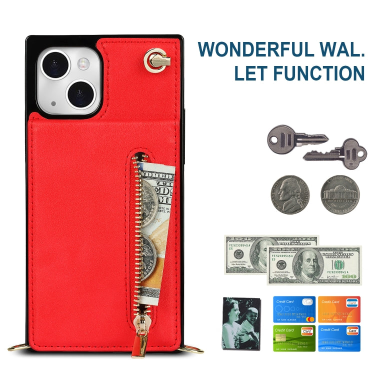 For iPhone 13 Cross-body Zipper Square Phone Case with Holder(Red)
