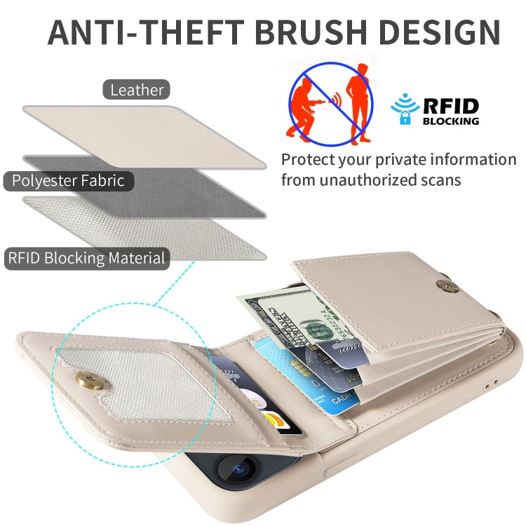 For iPhone 13 Crossbody Lanyard Zipper Wallet Leather Phone Case(Beige)