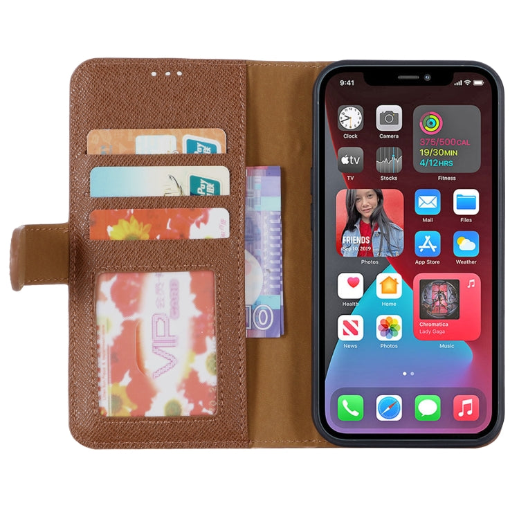 For iPhone 13 GEBEI Top-grain Leather Horizontal Flip Protective Case with Holder & Card Slots & Wallet & Photo Frame(Brown)