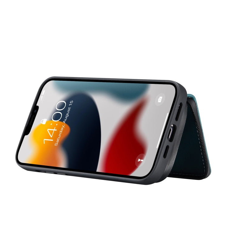 For iPhone 13 JEEHOOD Magnetic Zipper Horizontal Flip Leather Case with Holder & Card Slot & Wallet(Blue)