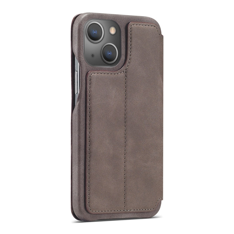 For iPhone 13 LC.IMEEKE Hon Ancient Series Horizontal Flip Leather Case with Holder & Card Slot(Coffee)