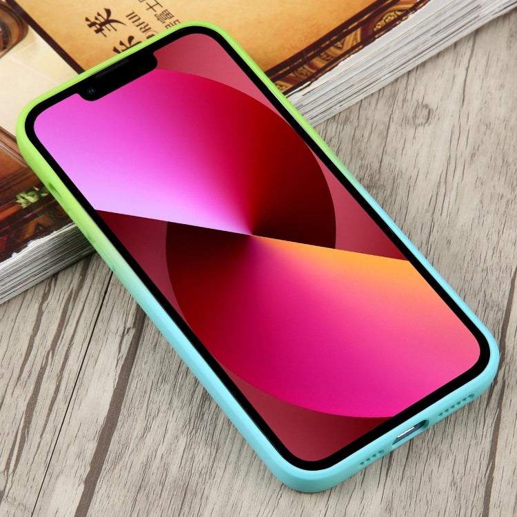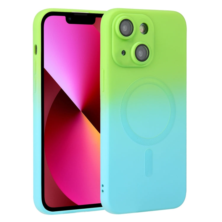 For iPhone 13 Liquid TPU Silicone Gradient MagSafe Phone Case(Cyan Blue)
