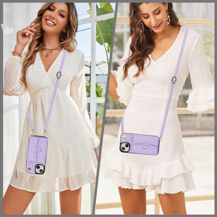 For iPhone 13 mini Crossbody Rhombic Horizontal Wallet Leather Phone Case(Purple)