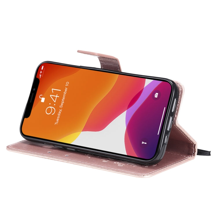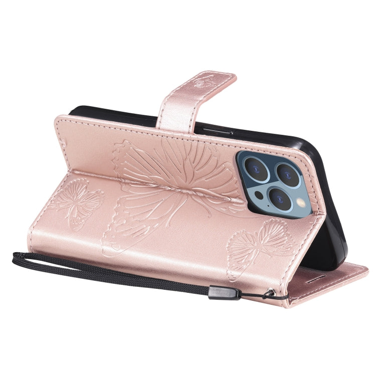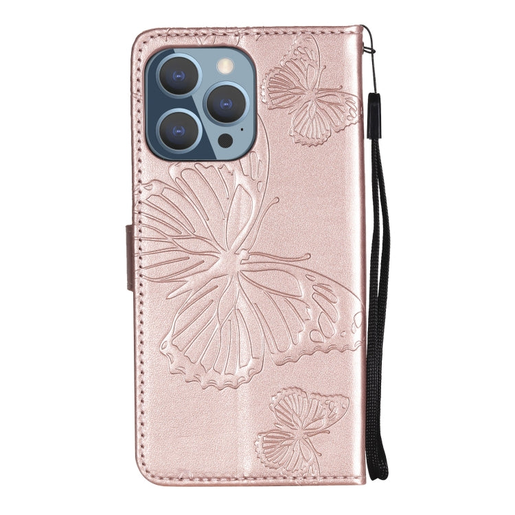 For iPhone 13 Pro 3D Butterfly Embossed Pattern Horizontal Flip Leather Case with Holder & Card Slot & Wallet & Lanyard (Rose Gold)
