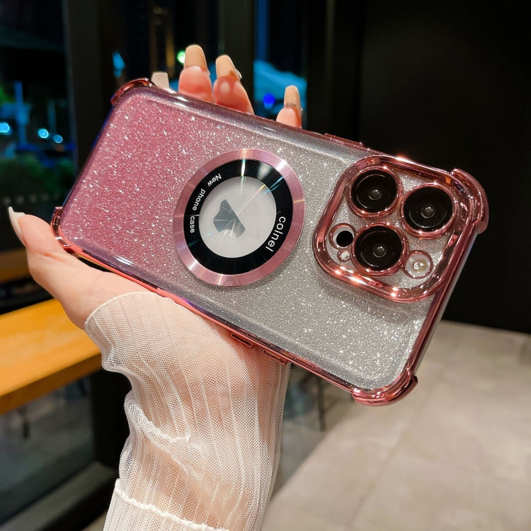 For iPhone 13 Pro 6D Electroplating Gradient Glitter Armor Magsafe Phone Case(Pink)
