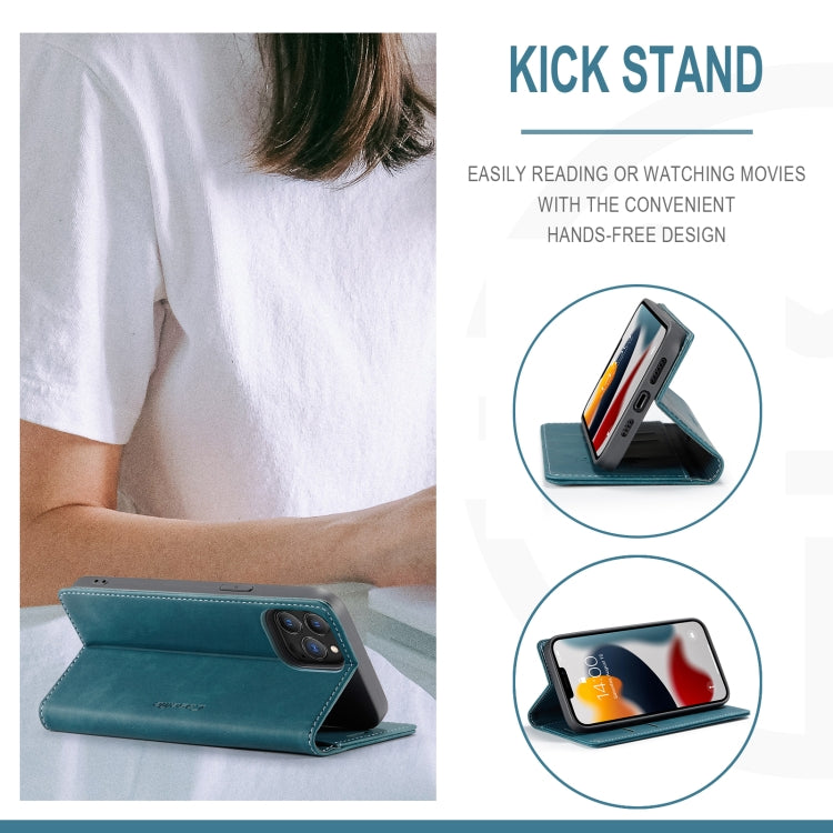 For iPhone 13 Pro CaseMe-013 Multifunctional Retro Frosted Horizontal Flip Leather Case with Card Slot & Holder & Wallet (Blue)