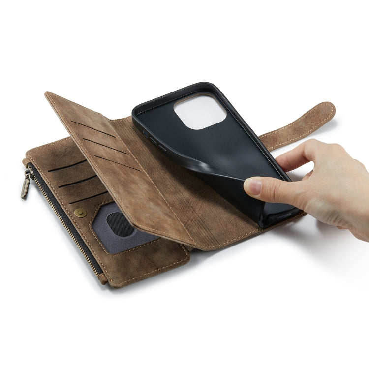 For iPhone 13 Pro CaseMe-C30 PU + TPU Multifunctional Horizontal Flip Leather Case with Holder & Card Slot & Wallet & Zipper Pocket (Brown)