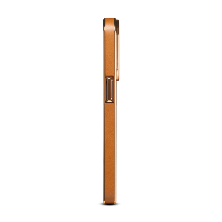 For iPhone 13 Pro Denior Cowhide Leather Plating Phone Case(Khaki)