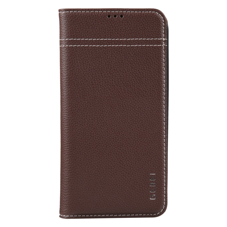 For iPhone 13 Pro GEBEI Top-grain Horizontal Flip Leather Phone Case(Brown)