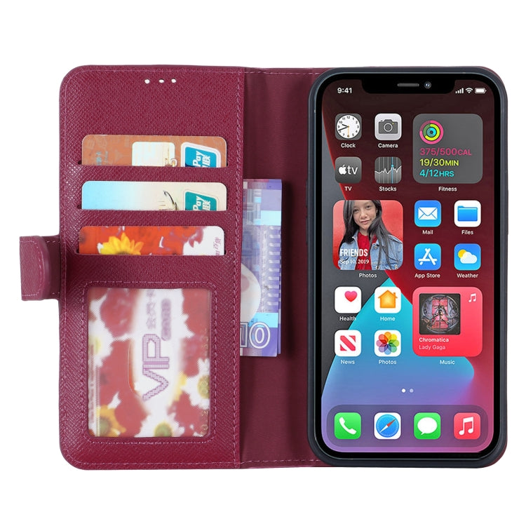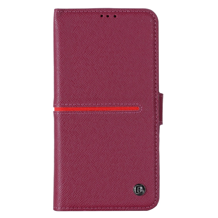 For iPhone 13 Pro GEBEI Top-grain Leather Horizontal Flip Protective Case with Holder & Card Slots & Wallet & Photo Frame (Red Wine)