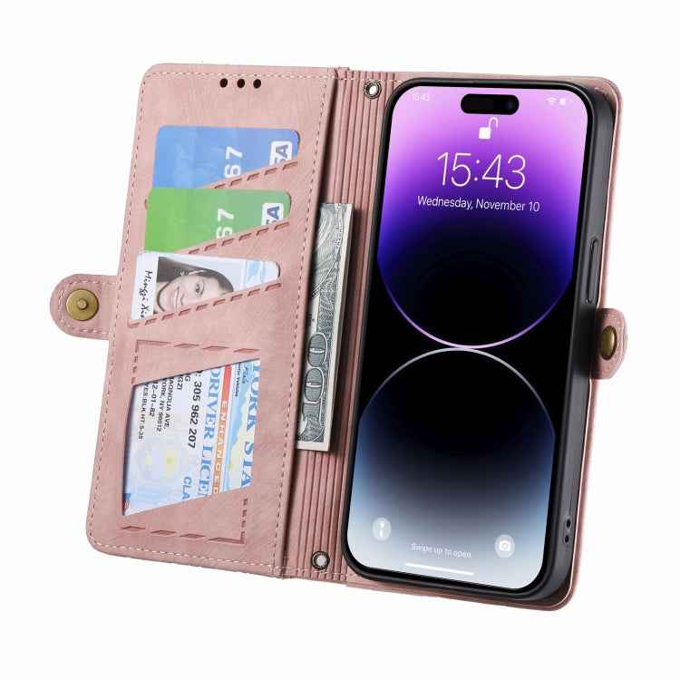 For iPhone 13 Pro Geometric Zipper Wallet Side Buckle Leather Phone Case(Pink)