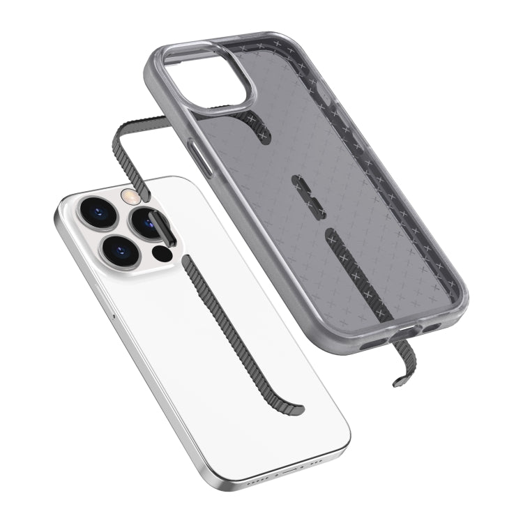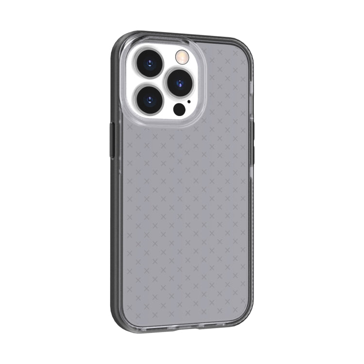 For iPhone 13 Pro Grid Pattern Shockproof Transparent TPU Phone Case (Black)