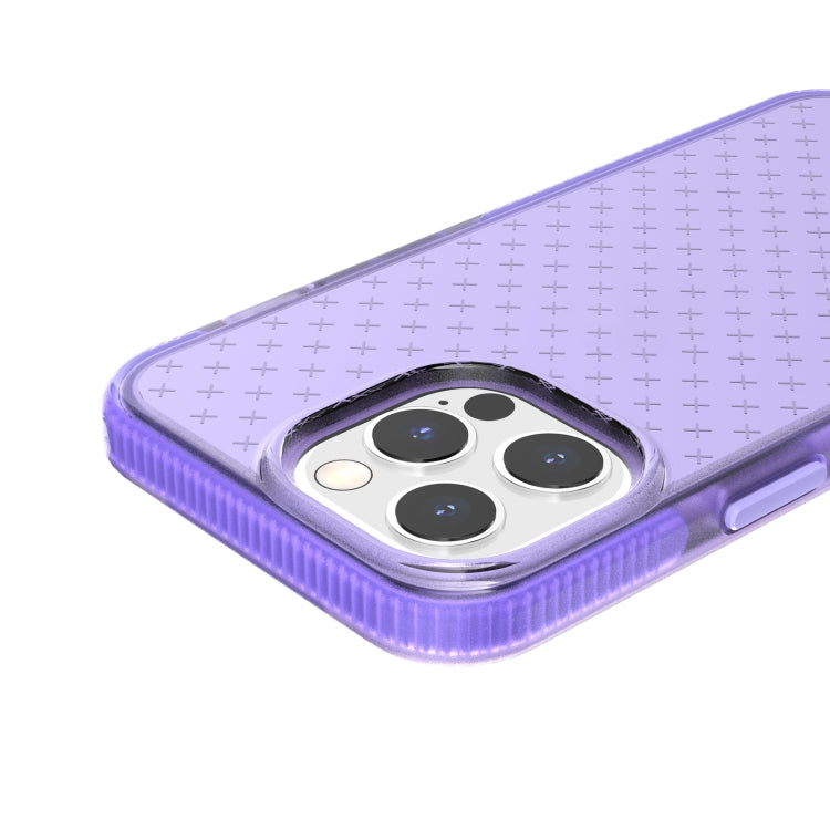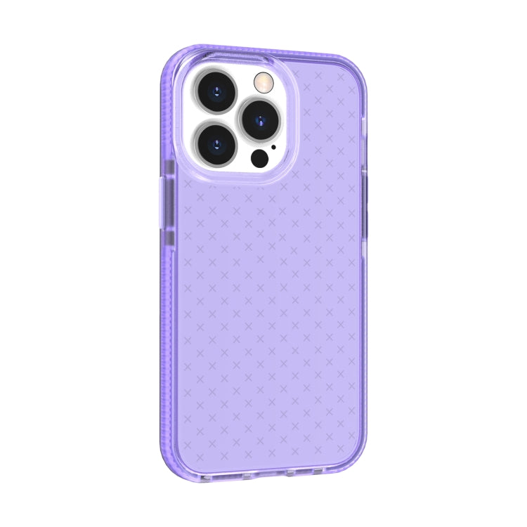 For iPhone 13 Pro Grid Pattern Shockproof Transparent TPU Phone Case (Purple)