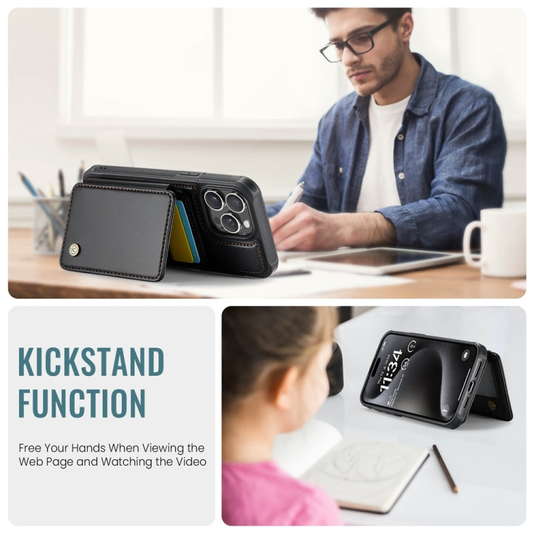 For iPhone 13 Pro JEEHOOD J05 Business Magnetic Style RFID Leather Phone Case(Black)