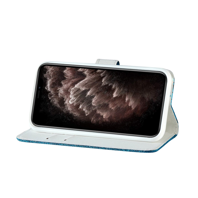 For iPhone 13 Pro Laser Glitter Powder Matching Crocodile Texture Horizontal Flip Leather Case with Card Slots & Holder & Wallet (Blue)