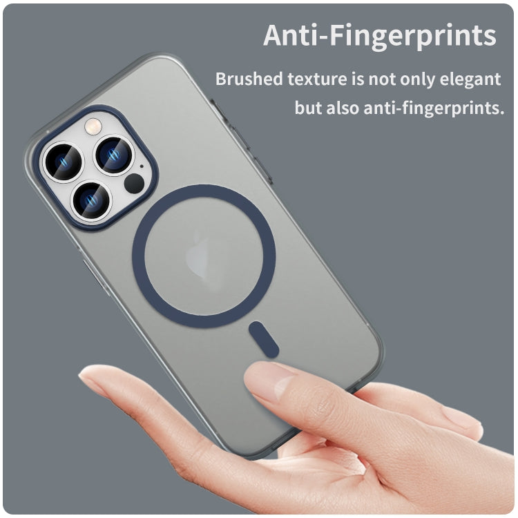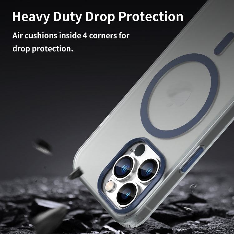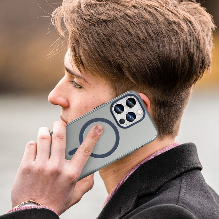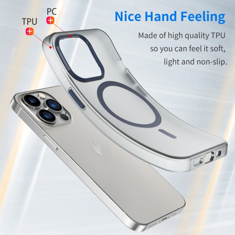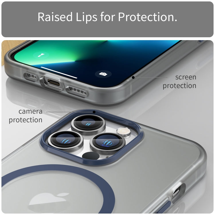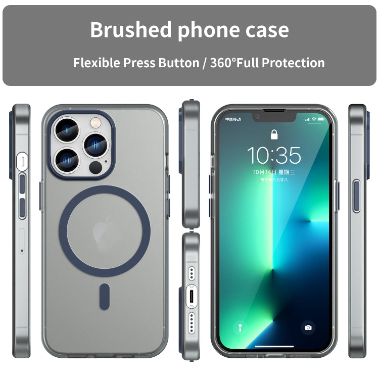 For iPhone 13 Pro MagSafe Frosted Translucent TPU + PC Full Coverage Phone Case(Dark Blue)
