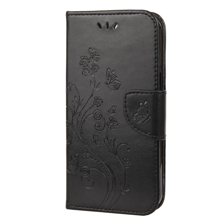 For iPhone 13 Pro Max Butterfly Flower Pattern Horizontal Flip Leather Case with Holder & Card Slots & Wallet (Black)
