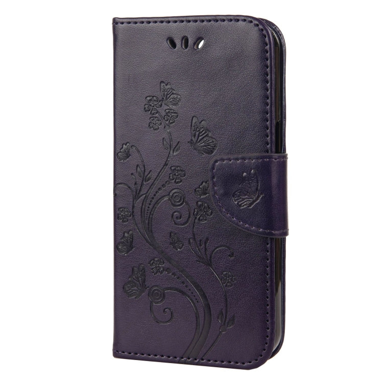 For iPhone 13 Pro Max Butterfly Flower Pattern Horizontal Flip Leather Case with Holder & Card Slots & Wallet (Deep Purple)