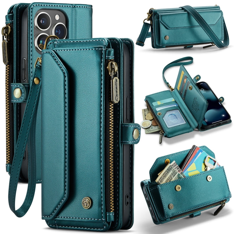 For iPhone 13 Pro Max CaseMe C36 Card Slots Zipper Wallet RFID Anti-theft Leather Phone Case(Blue-green)
