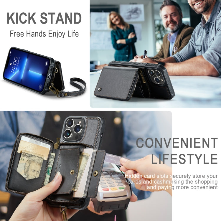 For iPhone 13 Pro Max JEEHOOD C22 Series Zipper Wallet Leather Phone Case with Dual Lanyard(Black)