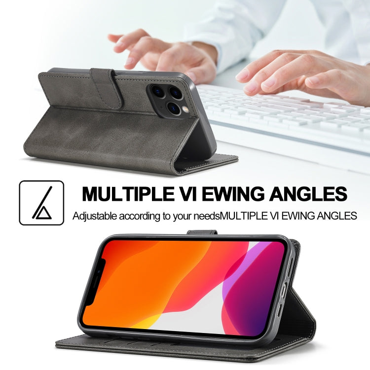 For iPhone 13 Pro Max LC.IMEEKE Calf Texture Horizontal Flip Leather Case with Holder & Card Slots & Wallet (Grey)