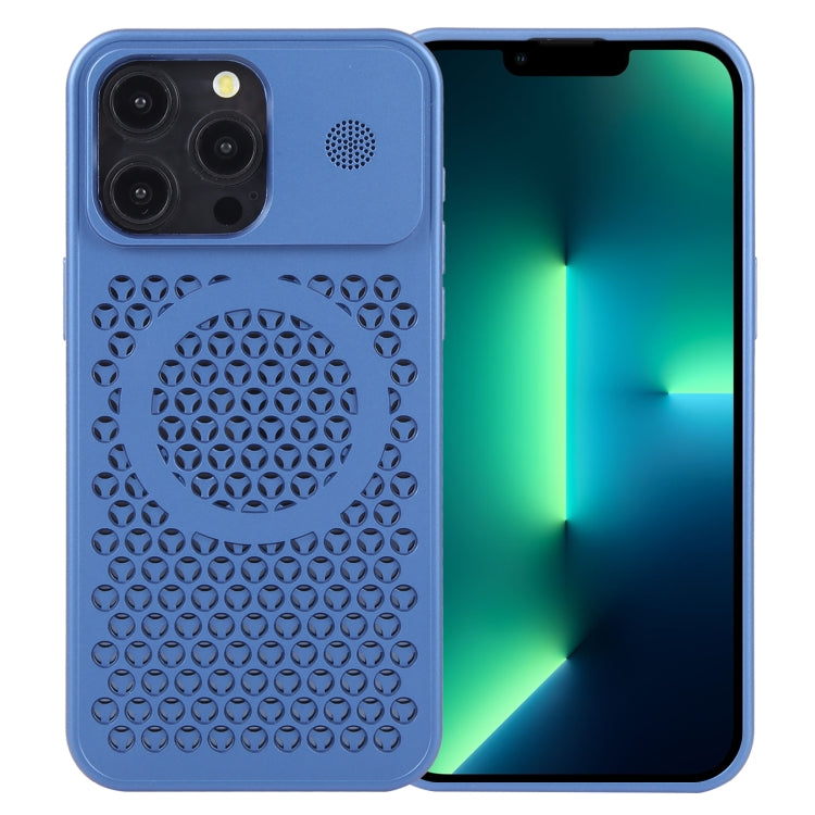 For iPhone 13 Pro Max Pure Color Honeycomb Aromatherapy MagSafe Phone Case(Blue)