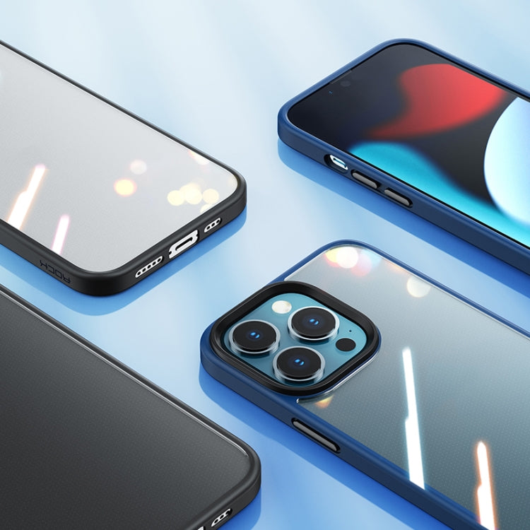 For iPhone 13 Pro Max ROCK PC + TPU Udun Transparent Protective Case (Blue)
