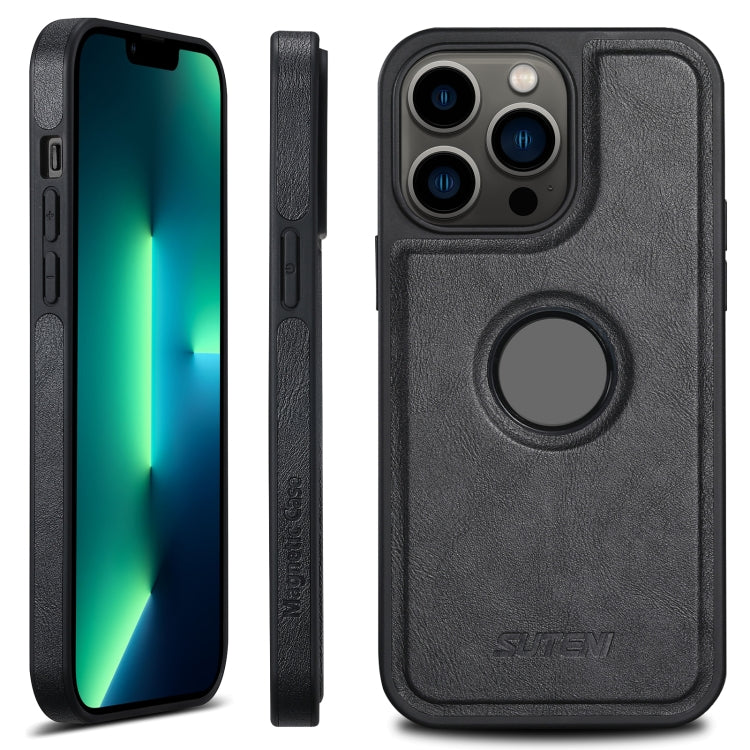 For iPhone 13 Pro Max Suteni G1 Magsafe Leather Back Phone Case(Black)