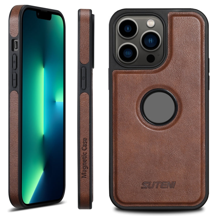 For iPhone 13 Pro Max Suteni G1 Magsafe Leather Back Phone Case(Brown)