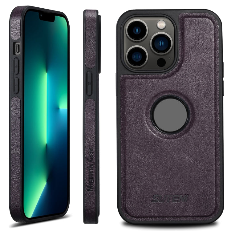For iPhone 13 Pro Max Suteni G1 Magsafe Leather Back Phone Case(Purple)